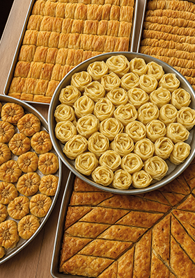 Gül: Üçgen kesilen yufkalar, uzun kenarından katlanarak şerit hâline getirilir. Ceviz eklendikten sonra yuvarlanarak gül formu verilir. Yüksekliği 4 cm’yi geçmez.